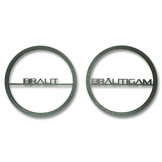 Stuhlschild Braut und Bräutigam Dekoration Geschenkidee Ehepaar Hochzeit Jubiläum 24 cm Durchmesser Weiß Schwarz Naturbelassen