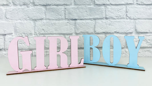 Schriftzug aus Holz mit Standfuß für Babyshower Babyparty Enthüllungsparty Schild Boy Girl Oh Baby!