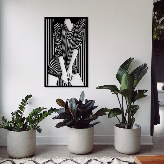Wandbild Wohnzimmerdekoration Frauenfigur aus Holz gelasert schwarz in verschiedenen Größen Wandkunst elegantes Holzbild zum Aufkleben Wand
