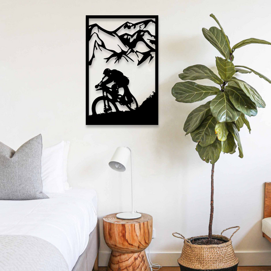 Wandbild aus Holz Mountainbike BMX Fahrrad Holzschild zum Aufkleben Fahrradliebhaber Wandkunst Geburtstagsgeschenk Radler Fahrradsport Berge