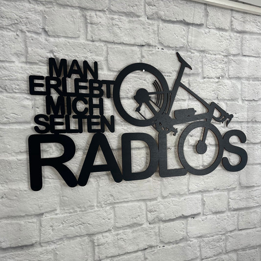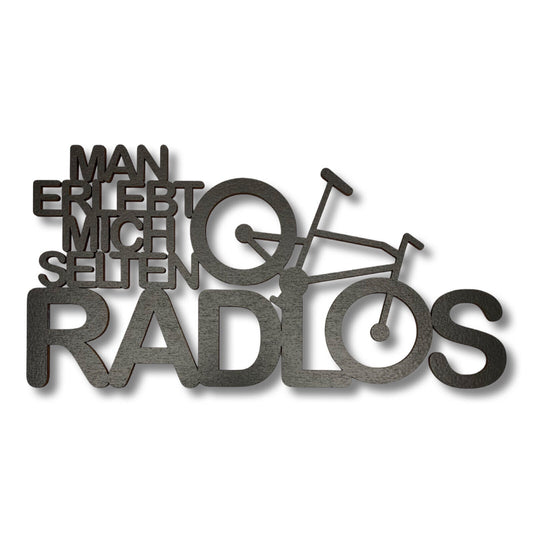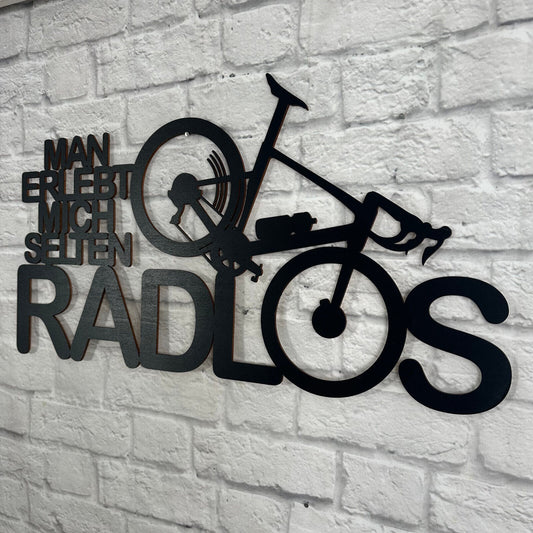 Schriftzug aus Holz "Man erlebt mich selten radlos": Holzschild für Fahrradliebhaber, Wanddeko
