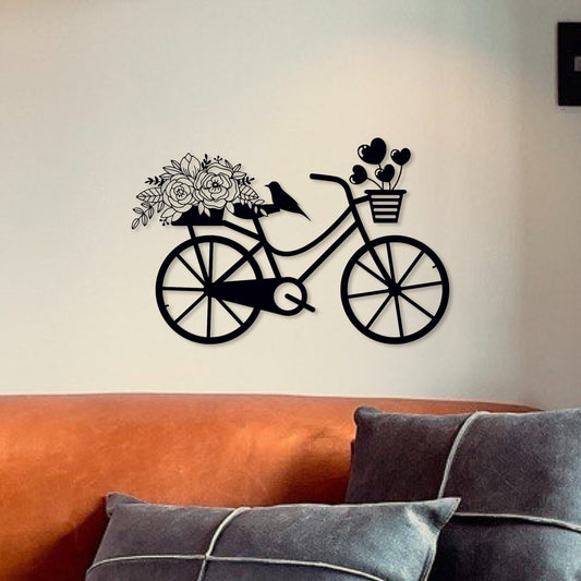 Wandbild aus Holz: Damenfahrrad mit Blumen | Holzschild, Deko für Fahrradliebhaber, Geschenk