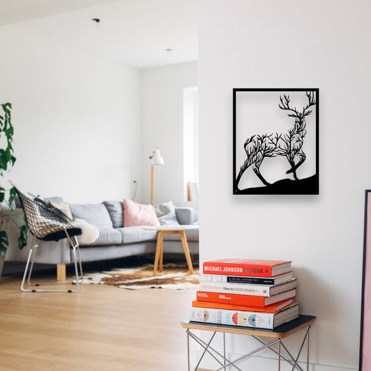 Wandbild aus Holz abstrakter Hirsch im Rahmen Holzschild zum Aufkleben Tierliebhaber Deko Wandkunst Geburtstagsgeschenk Naturliebe