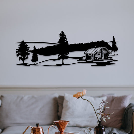 Wandbild aus Holz Haus in den Bergen Holzschild zum Aufkleben Berglandschaft Deko Berghütte Geburtstagsgeschenk für Bergsteiger Wandern