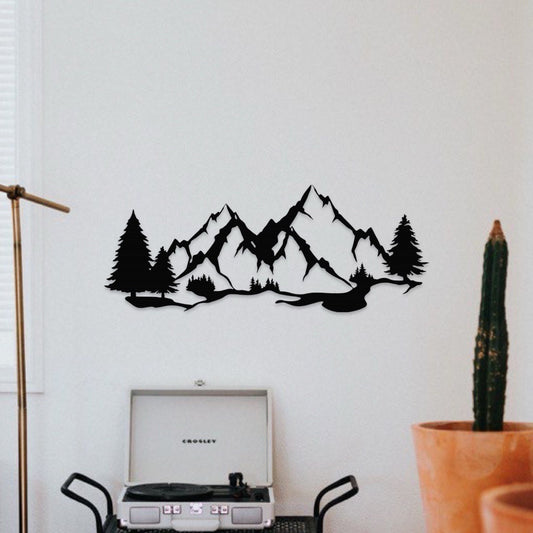 Wandbild aus Holz Geometrische Berge Holzschild zum Aufkleben Berglandschaft Deko Wandkunst Geburtstagsgeschenk für Bergsteiger Wanderer
