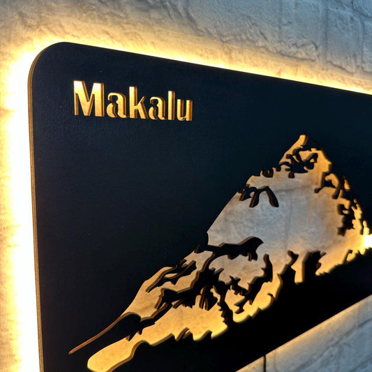 Wanddeko Makalu aus Holz – Geschenk für Bergsteiger – Himalaya Achttausender Wandbild – Deko für Naturfreunde & Bergwanderer