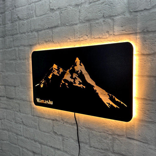 Wanddeko Manaslu – Bergsilhouette aus Holz – Geschenk für Bergsteiger und Naturfreunde – Himalaya Deko für Zuhause oder Berghütte