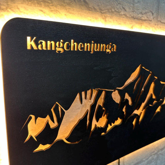 Wanddeko Kangchendzönga aus Holz – Geschenk für Bergsteiger – Himalaya Achttausender Wandbild – Deko für Naturfreunde & Bergwanderer