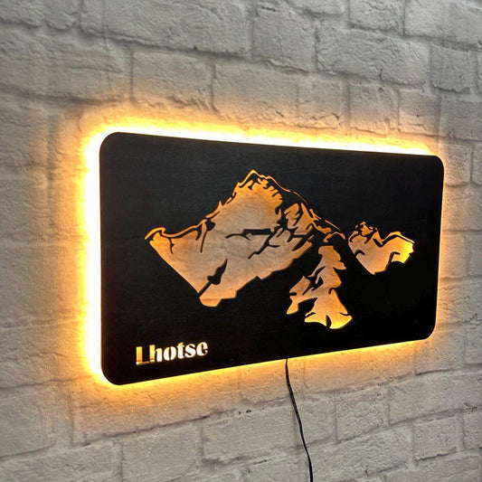 Wanddeko Lhotse aus Holz – Geschenk für Bergsteiger – Himalaya Achttausender Wandbild – Deko für Naturfreunde & Bergwanderer