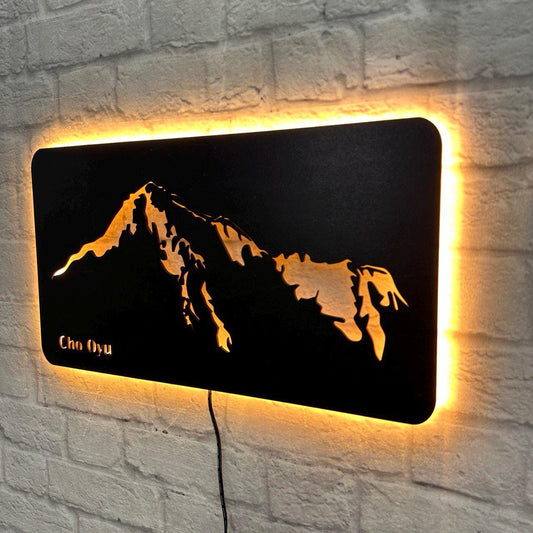 Wanddeko Cho Oyu aus Holz – Geschenk für Bergsteiger – Himalaya Achttausender Wandbild – Deko für Naturfreunde & Bergwanderer