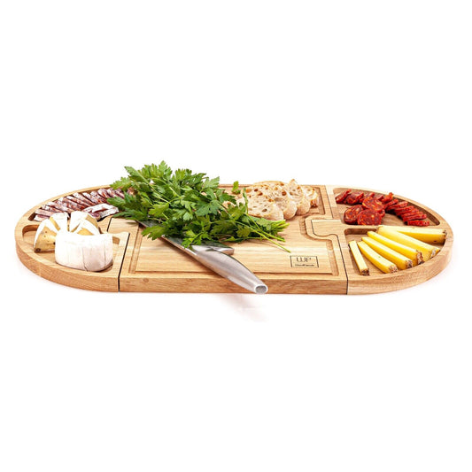 WoodFriends Servierbrett aus Eiche Massivholz 57x27x2cm 3-teilig Schneidebrett