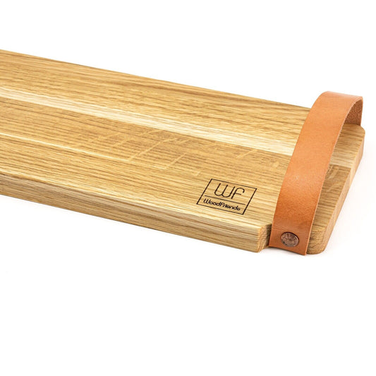 WoodFriends Servierbrett aus Eiche Massivholz 40x15x2cm Ledergriff Schneidebrett