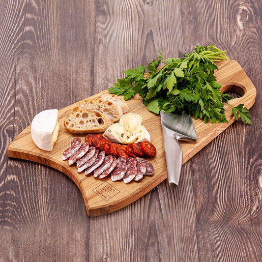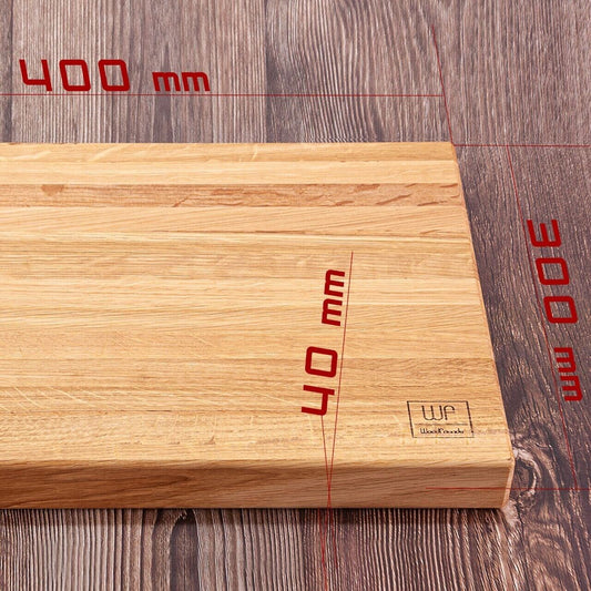 WoodFriends Schneidebrett aus Eiche Massivholz 40x30x4cm Griffmulde Grillbrett