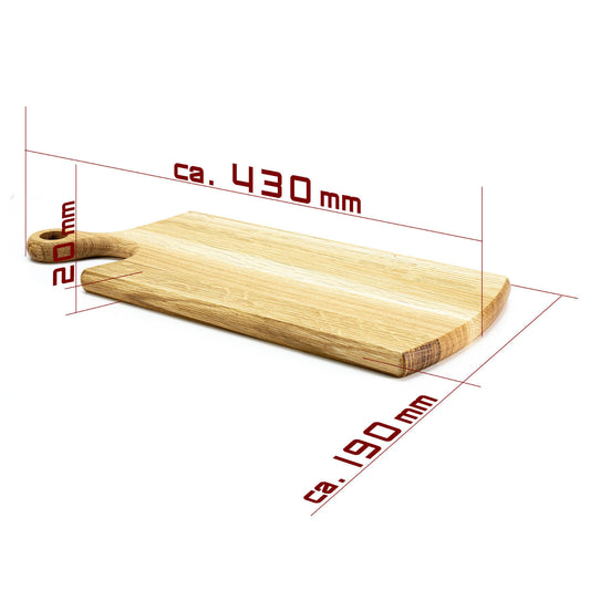 WoodFriends Schneidebrett Servierbrett aus Eiche Massivholz 38x19x2 cm mit Griff