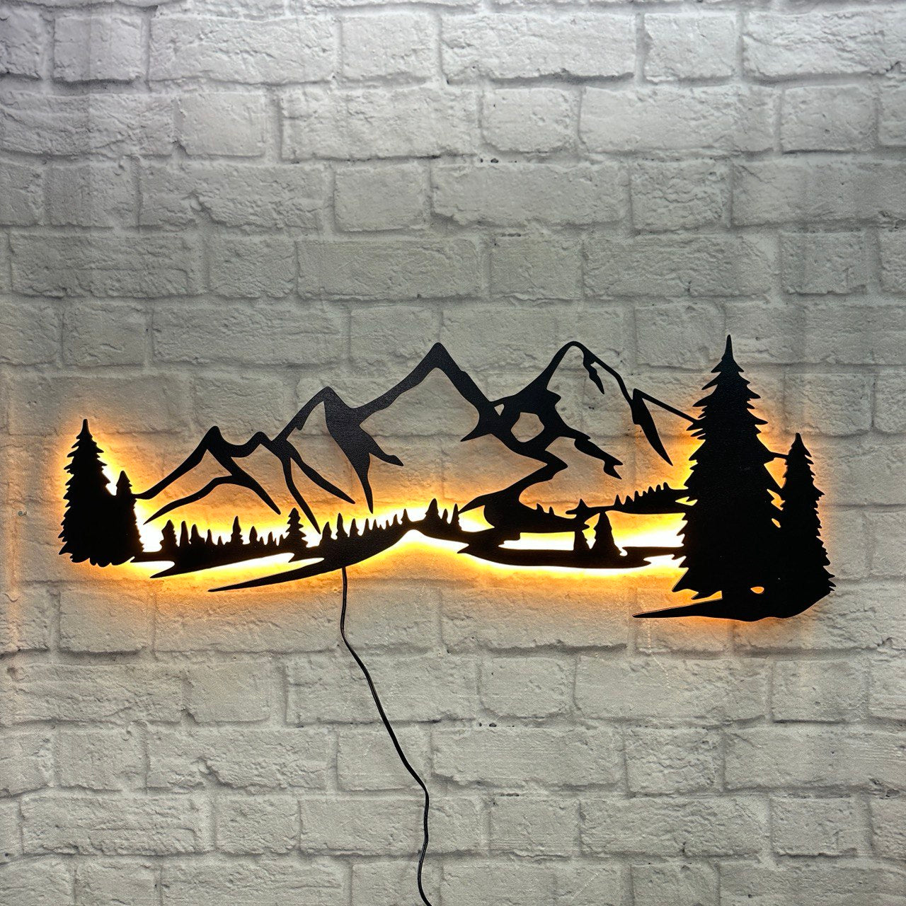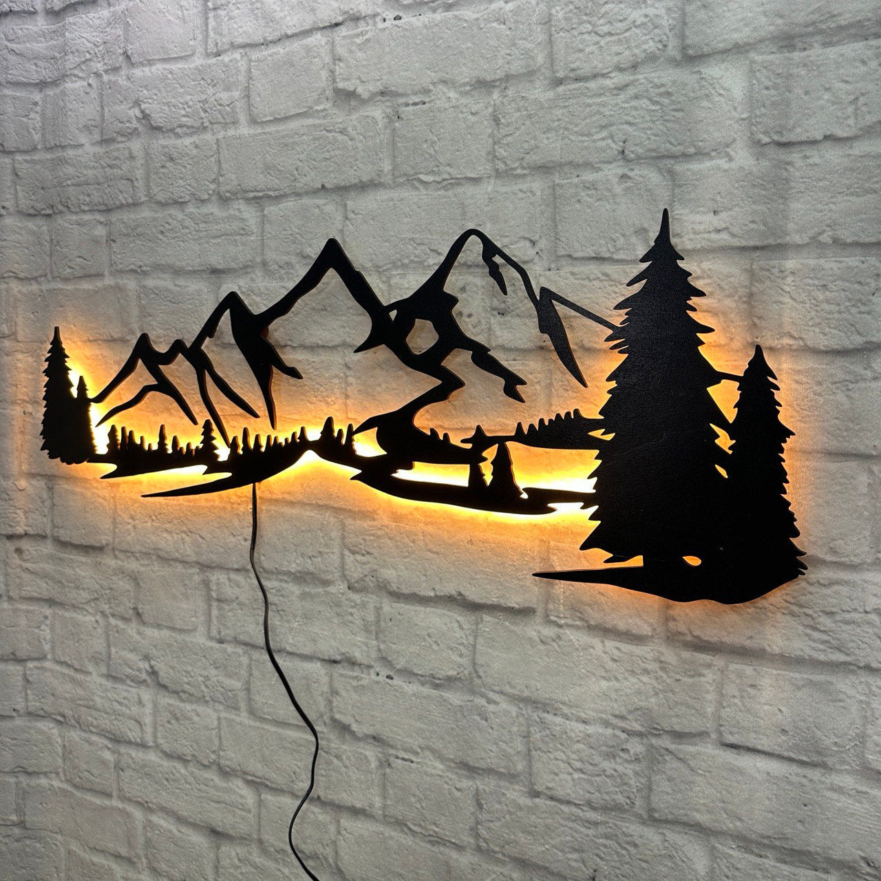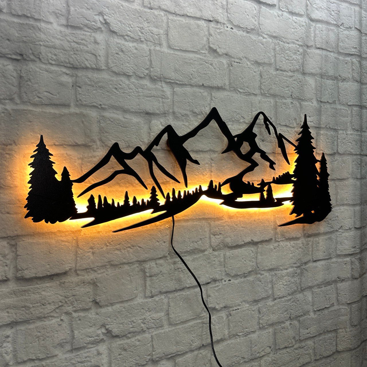 LED Wandbild aus Holz: Berglandschaft | Holzschild Deko für Bergliebhaber & Bergsteiger