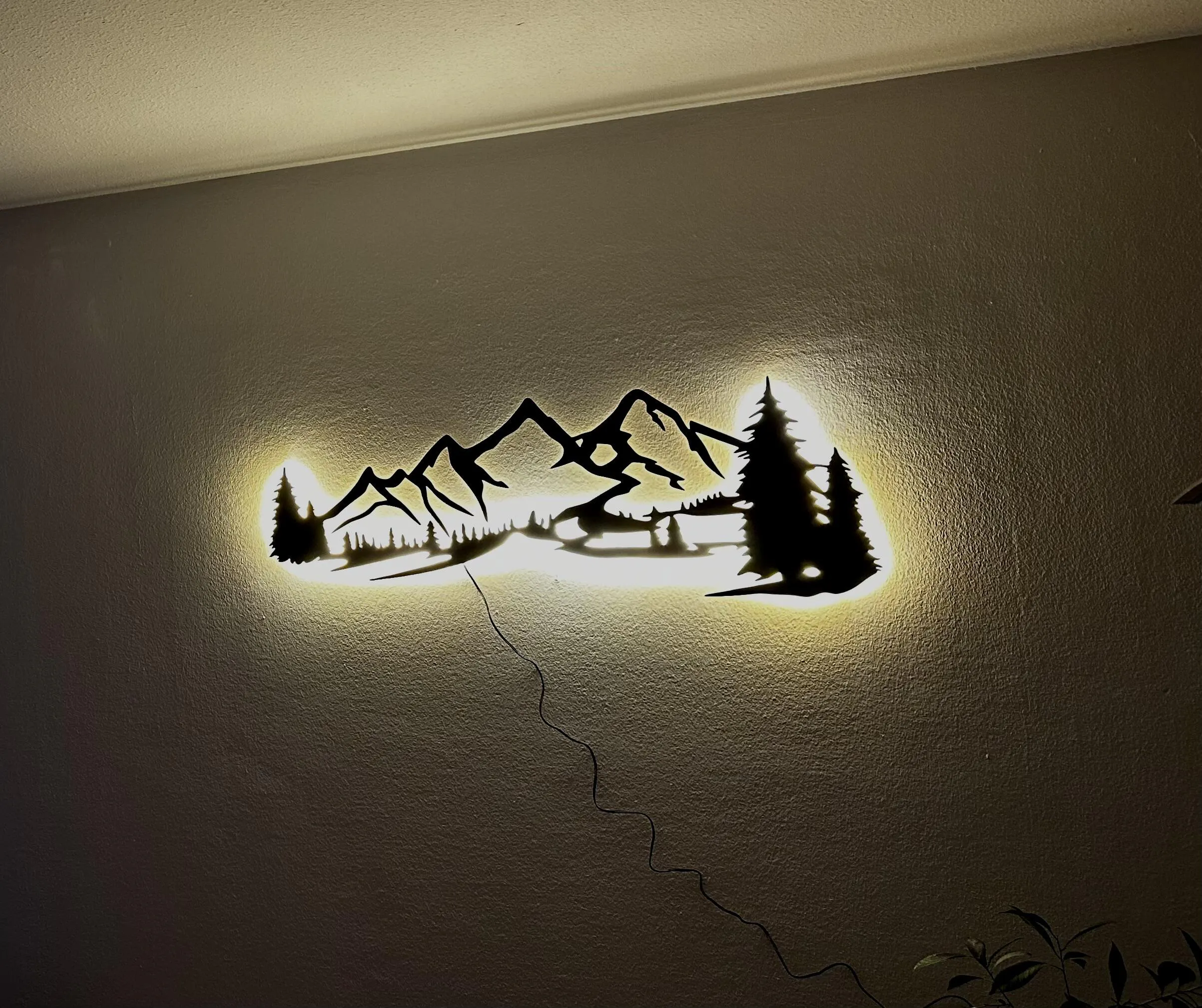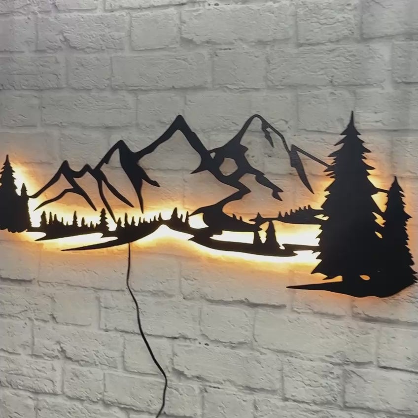 Erleben Sie Bergzauber auf eine ganz neue Art – mit unserem atemberaubenden LED-beleuchteten Wandbild aus Holz in edlem Schwarz! Dieses einzigartige Kunstwerk vereint die erhabene Schönheit der Berge mit moderner Technologie, gefertigt aus hochwertigem 4 mm Sperrholz mit präzisem Laserschnitt und einer integrierten LED-Beleuchtung, die die Silhouetten der Berge eindrucksvoll in Szene setzt.
